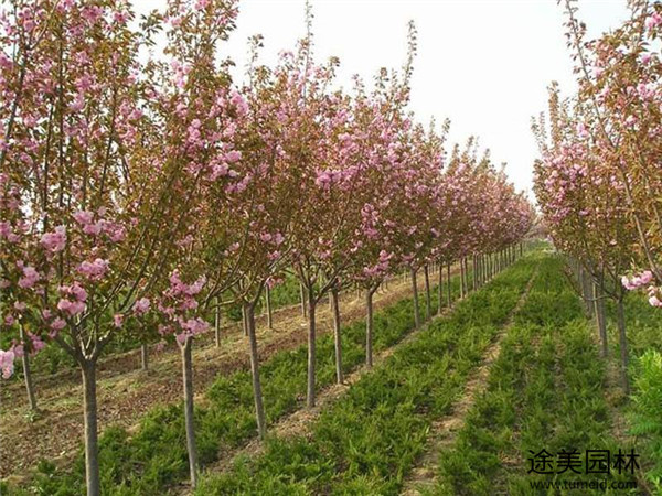 目前基地直銷櫻花,規格齊全,目前市場上的櫻花種類主要有早櫻和晚櫻兩類,早櫻的開花時間要比晚櫻的開花時間早半個月左右,他們的花色由潔白慢慢轉為深紅色,花朵主要以復瓣為主,花朵小喬,立體感強。