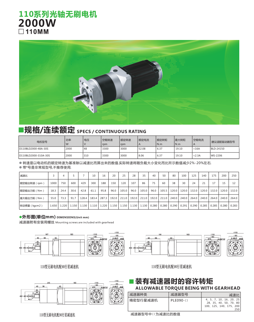 2000W直流無刷行星減速電機
